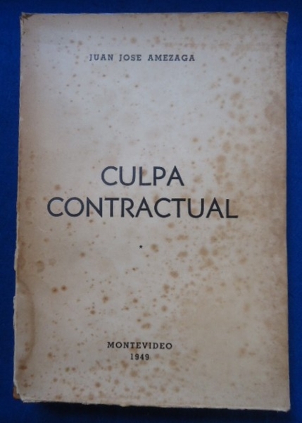 • Direito - Culpa Contractual: Lecciones de derecho civil Año 1938 (Versión Taquigráfica del Señor Santiago Legrand) - Autor: Juan Jose Amezaga - Espanhol - Editora: ZSM - 1949 - Brochura,345 pags, capa desbotada, capa,corte do livro e paginas amareladas escurecidas com manchas devido a ação do tempo e a qualidade do papel, corte do livro serrilhado, lombada levemente enrugada com descascado, varias paginas lacradas, formato do livro 17x25 cm.***Trata-se de uma obra de referência jurídica, publicada originalmente em 1949 pela Zorrilla de San Martin em Montevidéu, Uruguai, e o seu foco é em responsabilidade civil e obrigações no direito uruguaio.