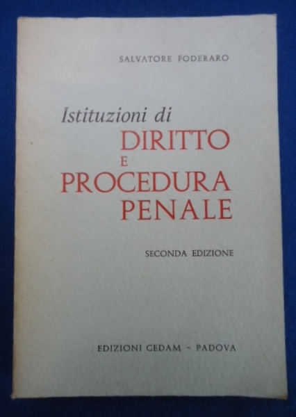 • Direito - Istituzioni di Diritto e procedura penale 2ªEdição - Autor: Salvatore Foderaro - Italiano - Editora: Padova - 1975 - Brochura, 278 pags, capa desbotada, capa, corte do livro e paginas amareladas com manchas, com carimbo marca dágua na folha de rosto, obra sem riscos, formato do livro 17x24 cm.