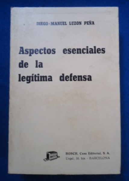 • Direito - Aspectos esenciales de la legítima defensa - Autor: Diego-Manuel Luzon Penã (Prólogo del Prof. Dr. Enrique Gimbernat Ordeig) - Espanhol - Editora: Bosch - 1978 - Brochura, 576 pags, capa,corte do livro e paginas amareladas com manchas devido a ação do tempo e a qualidade do papel, livro levemente empenado, obra sem riscos, formato do livro 14x22 cm. é uma das monografias mais influentes sobre direito penal espanhol e latino-americano no que diz respeito à legítima defesa . O texto analisa a legítima defesa não apenas como um direito individual, mas também como uma instituição que protege o sistema jurídico como um todo.