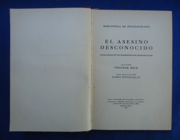 • Direito - El asesino desconocido: Psicoanálisis de los procedimientos criminologicos (Biblioteca de psicoanálisis) - Autor: Theodor Reik - Espanhol - Editora: El Ateneo - 1943 - Capa dura,287 pags, capa desbotada, corte do livro e paginas amareladas com manchas devido a ação do tempo e a qualidade do papel, algumas paginas com grifos, formato do livro 16x23 cm.**Nos diversos capítulos que compõem esta obra encomiável, um dos maiores máritos no campo da psicologia criminosa, o autor revela grande erudição, vasta experiência, domínio do tema e um estilo literário perfeito.