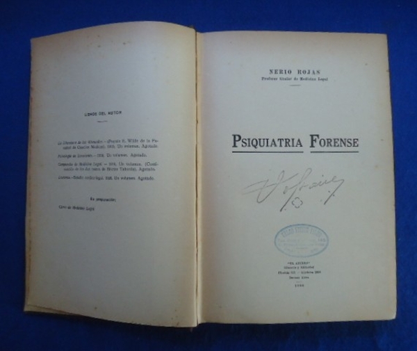• Direito - Psiquiatria Forense - Autor: Nerio Rojas - Espanhol - Editora: El Ateneo - 1932 - Capa dura, 400 pags, corte do livro e paginas amareladas com manchas devido a ação do tempo e a qualidade do papel, com carimbo e uma assinatura na folha de rosto, livro em bom estado de conservação, sem riscos, formato do livro 16x23 cm.**O livro é um trabalho clássico na área da medicina legal e psiquiatria forense.
