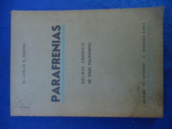 • Direito - Parafrenias: Delirio Cronico de ideas polimorfas - Autor: Dr. Carlos R. Pereyra - Espanhol - Editora: El Ateneo - 1943 - Brochura,157 pags, capa,corte do livro e paginas amareladas com manchas, com pequeno risco na primeira capa, capa desbotada, paginas sem riscos, formato do livro 15x22 cm.