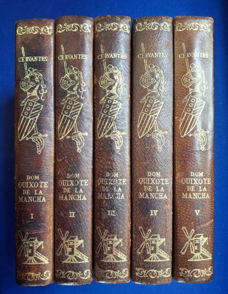• Livros - Dom Quixote De La Mancha (Edição Luxo), 5 vols. - Cervantes - Jose Olympio - 1952 - Ilust Gustave Doré - Capa dura original, encadernado em couro, em boas condições, amarelado pela ação do tempo